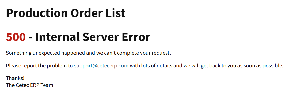We are getting this message on just about everything we try to do in Cetec this morning.