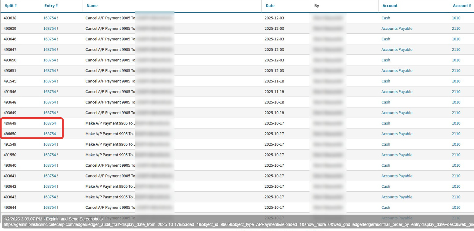 -in the payments list on 2025-10-17, you will see both AP Pmt 9905 & non-system ācheckā ACH pmt for $7K right next to each otherā¦