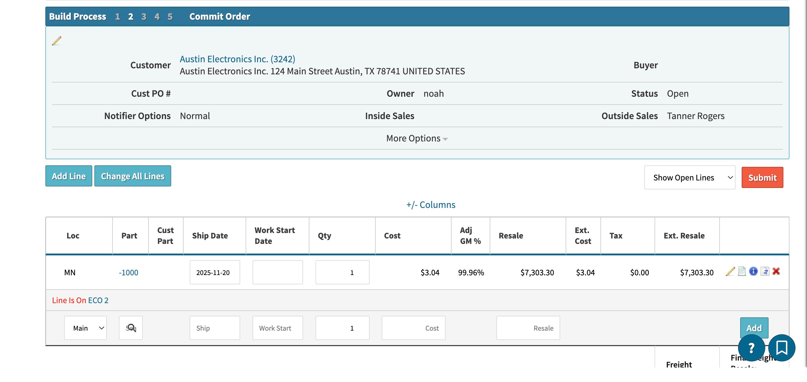 In order to avoid creating objects in your live environment, I will instead refer you to documentation and how-to videos found on our website to assist you further in using our estimating tool: Quoting, BOM Estimation, Job Costing, & Order Entry (navigate to “Quote Level BOM Management & Estimation”).