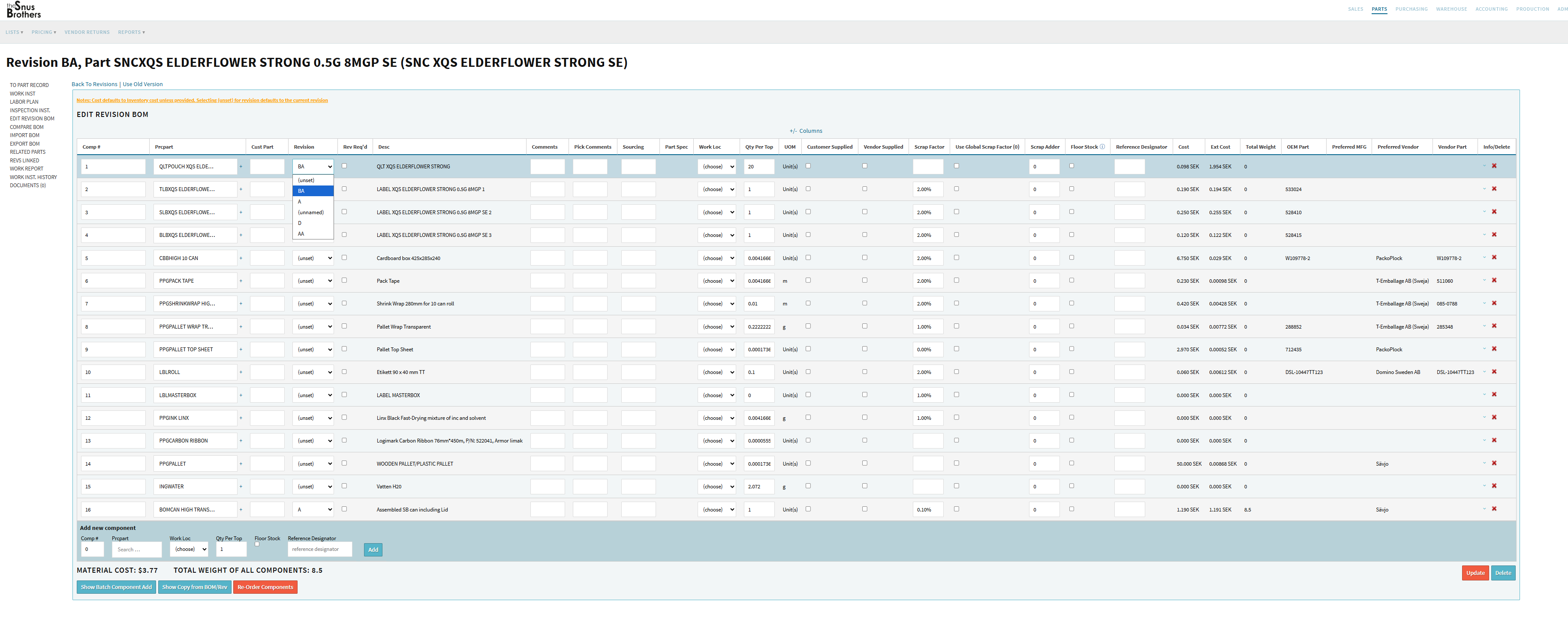 In my BOM for Part SNCXQS ELDERFLOWER STRONG with revision BA…