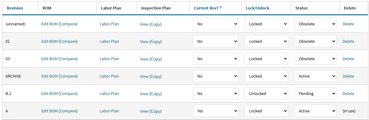 There can ONLY be One ‘Current REV’, which the system will Pick as default on the Order Screen every time.