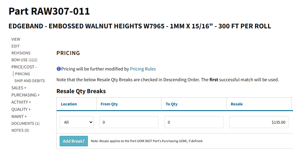 The ‘default resale’ on the parts page is not updating even after updating the resale on the pricing page. See attached screenshots.