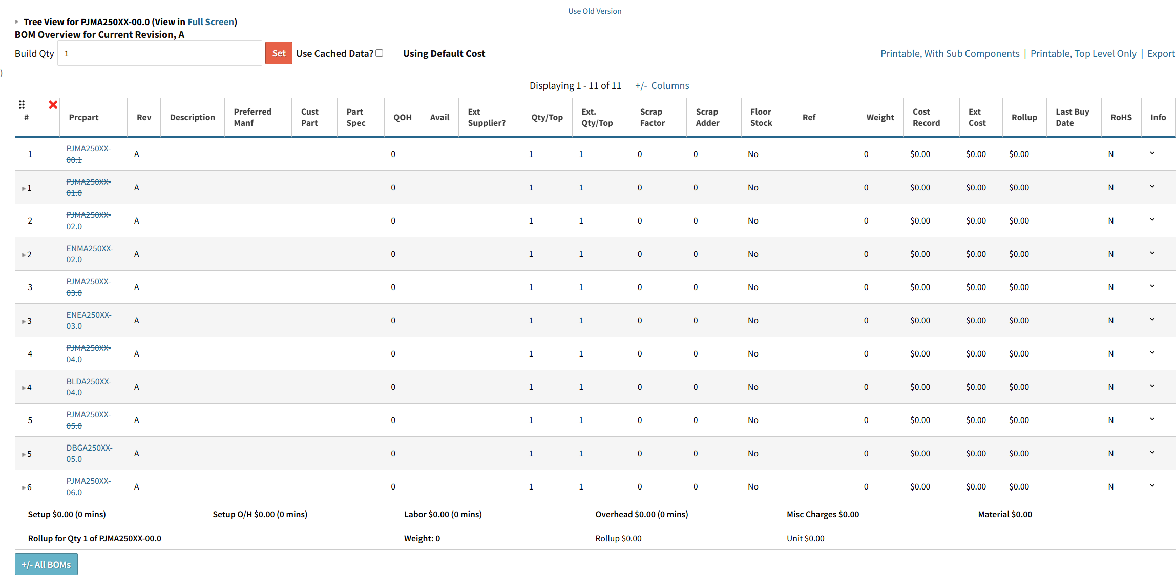 However, when I check the BOM overview, the parts I deleted are still appearing.