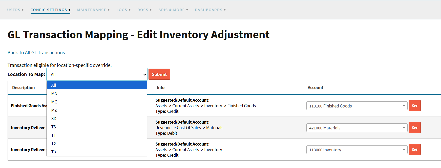 Once you’ve configured your multiple LNAMES you can define GL Transaction mappings specific to each location.
