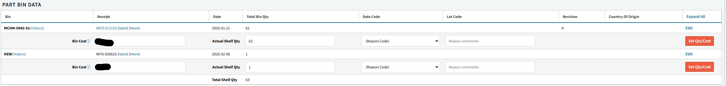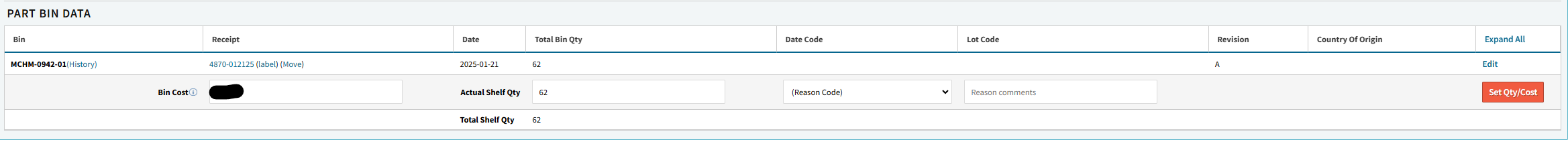 We are using Part# as the default ‘PRIMARY BIN’ and have QoH in this bin (see screen shot below)