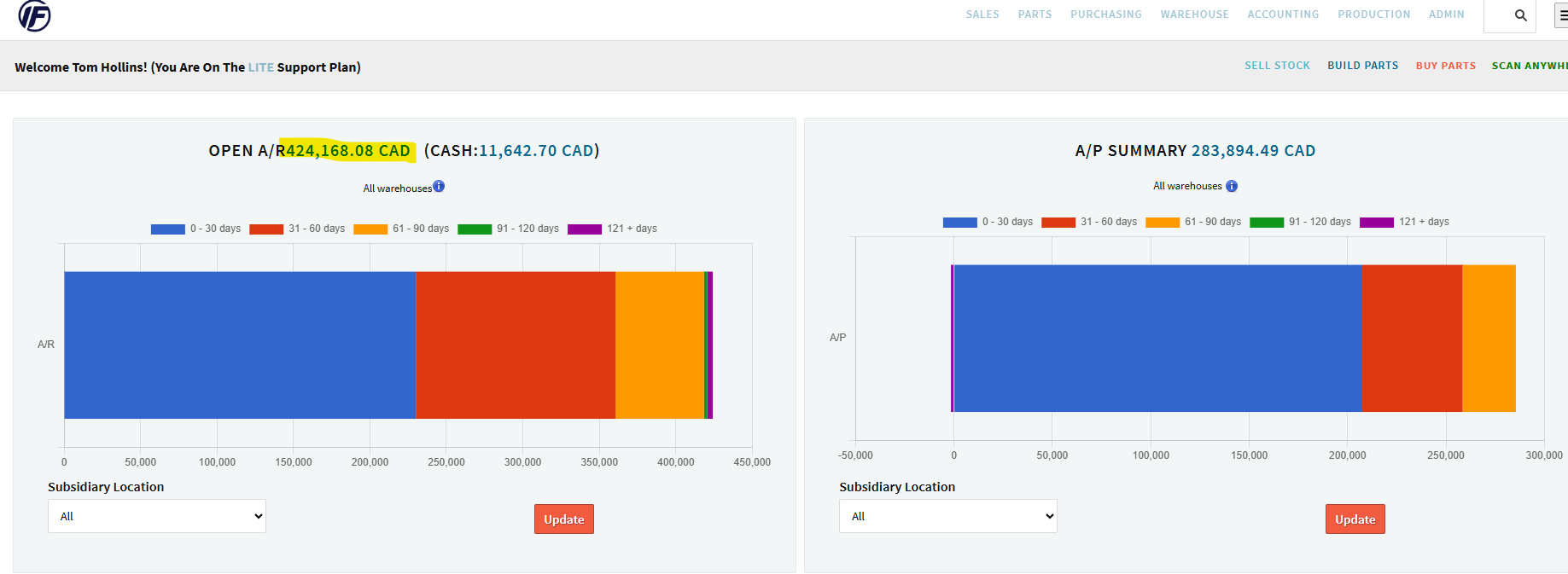 AR: Our AR now seems to be split between CAD and USD. Only the CAD balance is picking up on the home screen. All of our accounts receivable in denominated in CAD. Please correct all AR records to read CAD