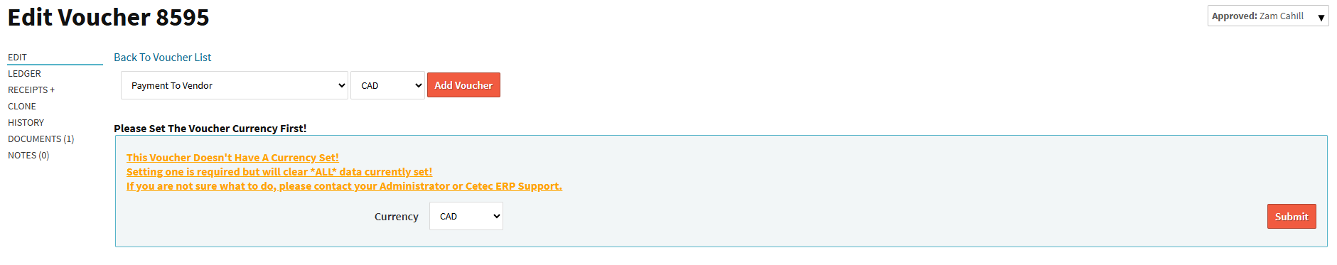 I’ll take a look at your voucher and see why it can’t identify the currency.. usually if the currency is not set then it’s assumed to be the system default.