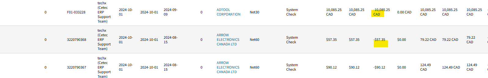 Display the “CAD” currency label only for Canadian customers and vendors. For USD entries, please leave the currency label blank — similar to the current updated format in the A/R List (Receivables) report.