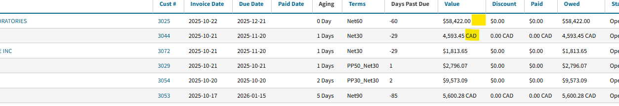 A CAD report showing only CAD customers/vendors.
