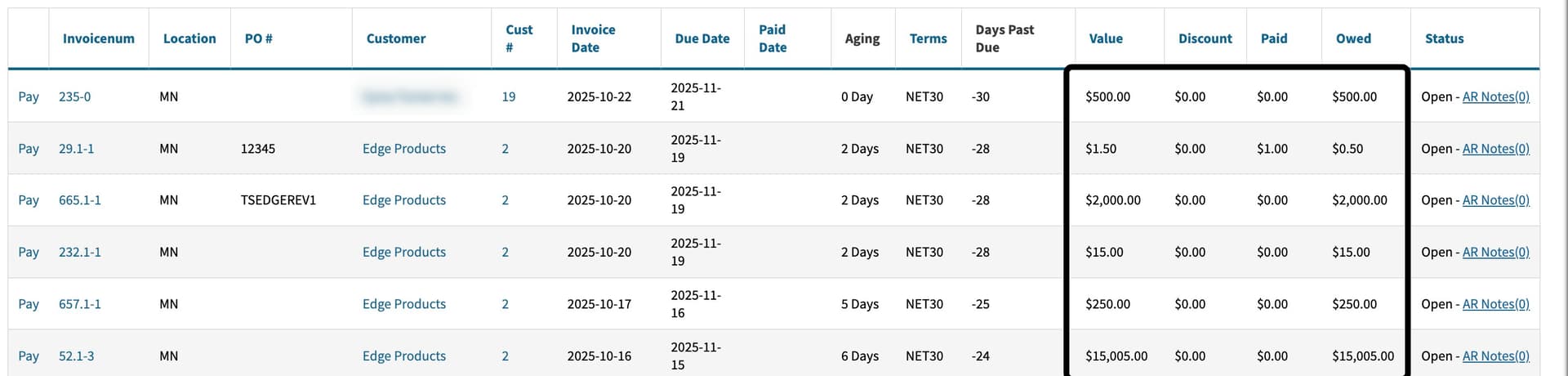 As you can see in the screenshot above our AR List (receivables) is still presenting the actual dollar sign we just removed the USD flag there.