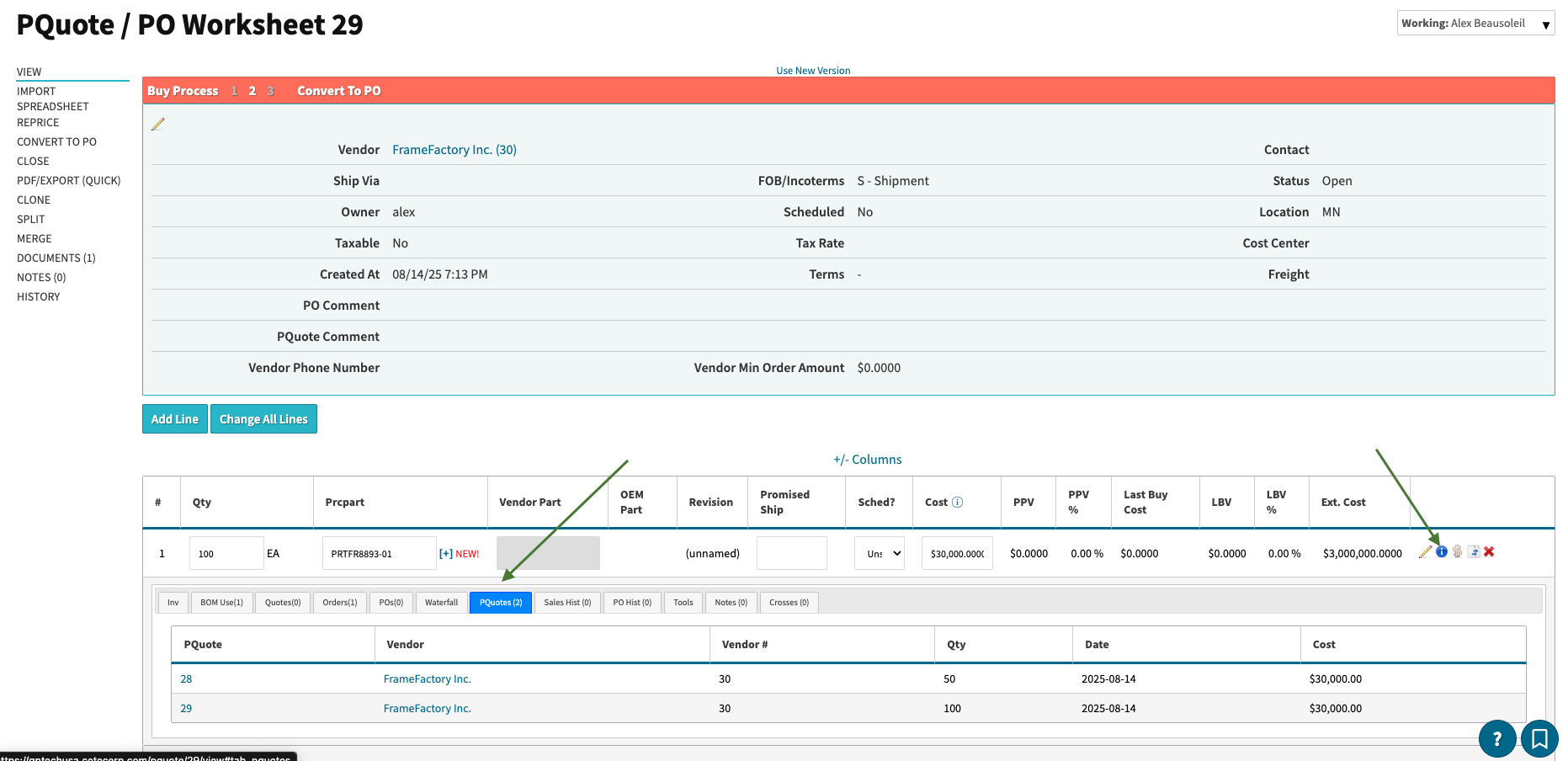 when creating a pquote from an order, it would be nice if along with qty need, qoh, avail, qoo we could also see from that screen if a pquote has been started for that part number. sometimes we use same parts for different assemblies.